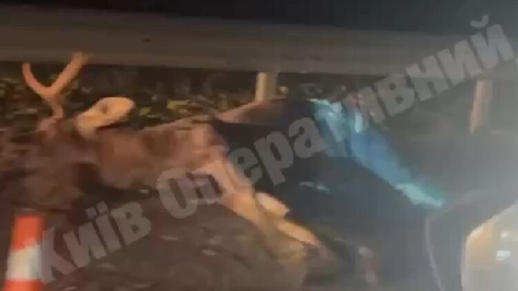 Авто збило лося на трасі під Києвом. Кадр із відео