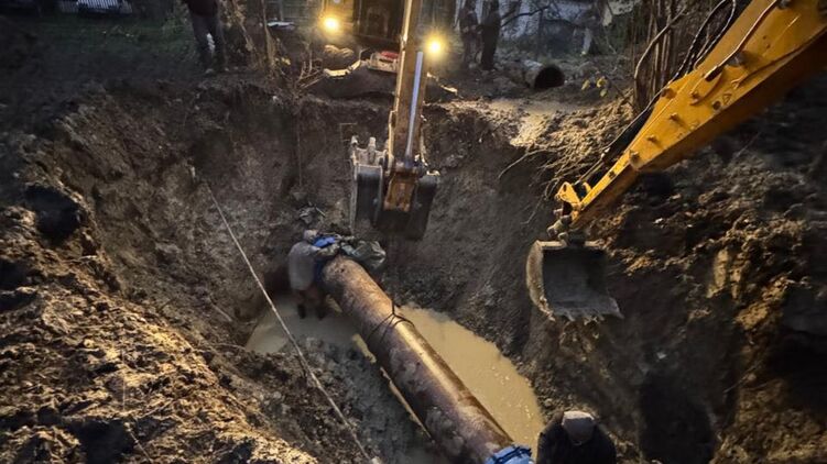 КП "Водоканал" назвало аварію наймасштабнішою за багато років. Комунальники зазначають, що після усунення одного пошкодження труби прориви продовжують виникати на інших ділянках водопроводу.