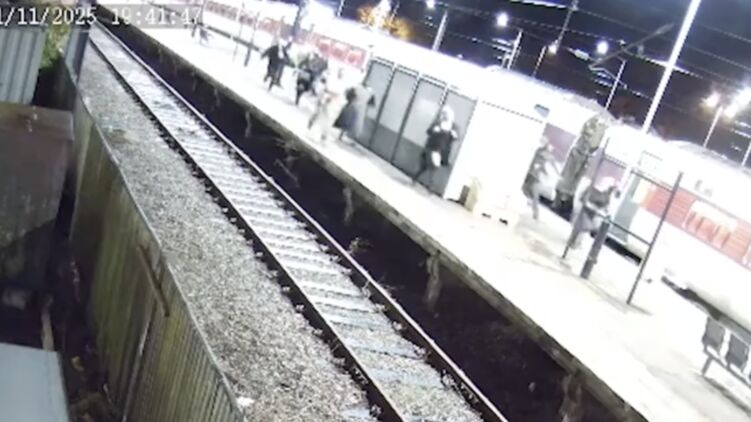 На опублікованих кадрах можна помітити, як група пасажирів біжить залізничною станцією, а озброєний ножем чоловік переслідує натовп людей.