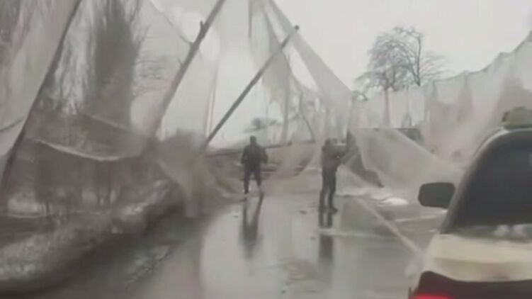 Антидронові сітки в Україні обрушуються разом із опорами через перший сніг. Відео