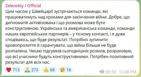 Президент України Володимир Зеленський також прокоментував початок переговорів у Женеві.