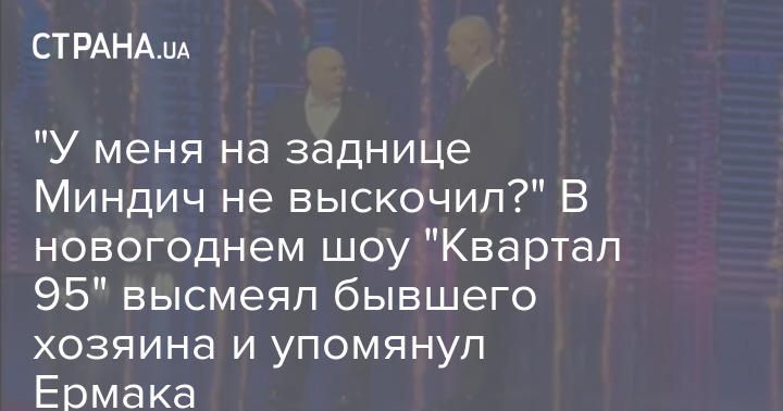 На новорічному концерті студія "Квартал 95" розкритикувала та висміяла свого колишнього співвласника та близького соратника президента України Володимира Зеленського бізнесмена Тимура Міндіча. Також у виступі згадується екс-глава Офісу президента Андрій Єрмак.