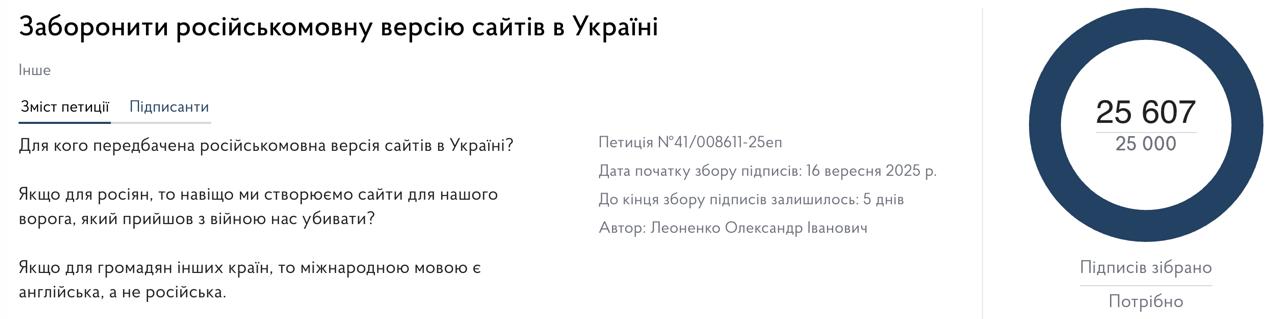 В Україні немає правових інструментів для заборони російськомовних версій сайтів. За статтею 27 закону "Про забезпечення функціонування української мови як державної" сторінки в інтернеті можуть вестись іншими мовами, якщо українська версія є головною.