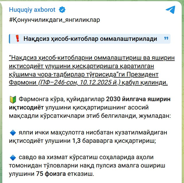 • товари та послуги вартістю понад 25 млн сум (трохи більше 2000 доларів);
