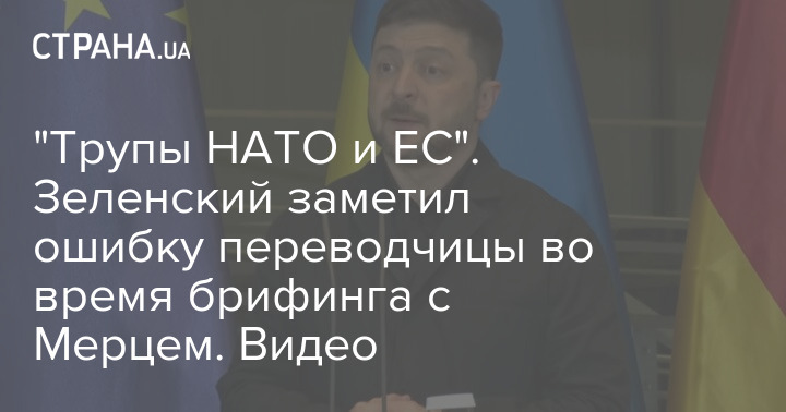 Під час брифінгу президента України Володимира Зеленського та канцлера ФРН Фрідріха Мерця перекладачка переклала англійське слово "troops" (війська) як "трупи".