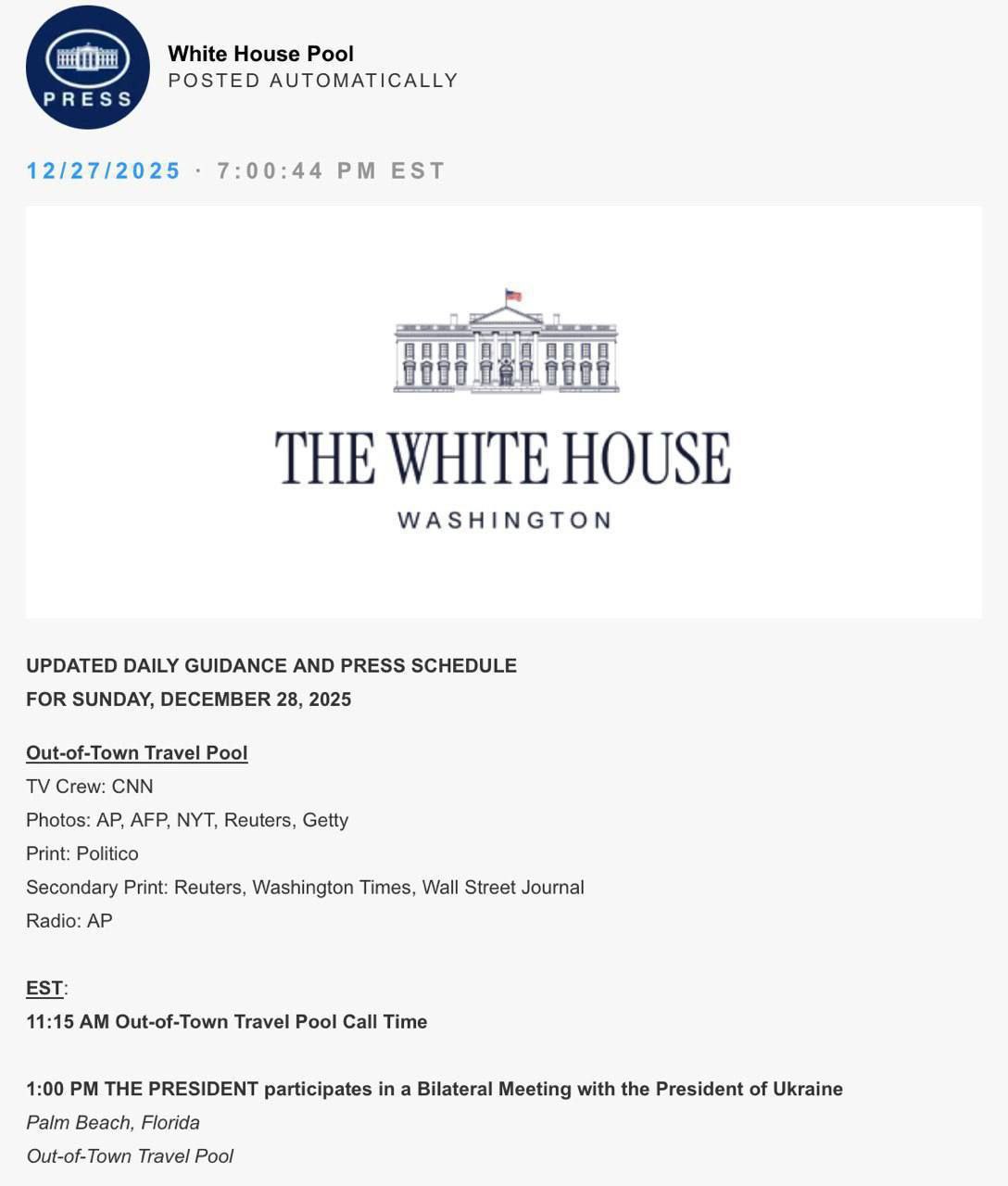 Водночас сам Зеленський, зважаючи на все, вже прибув до Флориди, де ввечері має відбутися його зустріч з американськими представниками.