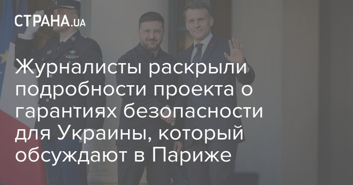 Видання "Суспильне" заявляє, що в його розпорядженні знаходиться проект документа про гарантії безпеки, який сьогодні обговорюють на зустрічі "коаліції охочих" у Парижі, де, крім інших, присутні глава Офісу президента Кирило Буданов, лідер фракції "Слуга народу" Давид Арахамія та секретар СНБО Стівен Віткофф і зять Дональда Трампа Джаред Кушнер від США. Нічого про відправлення західних миротворців, зокрема американських, в Україну, про що писали ЗМІ, у ньому не йдеться.