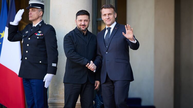 Володимир Зеленський та Емманюель Макрон перед зустріччю "коаліції охочих" у Парижі. Фото: t.me/V_Zelenskiy_official