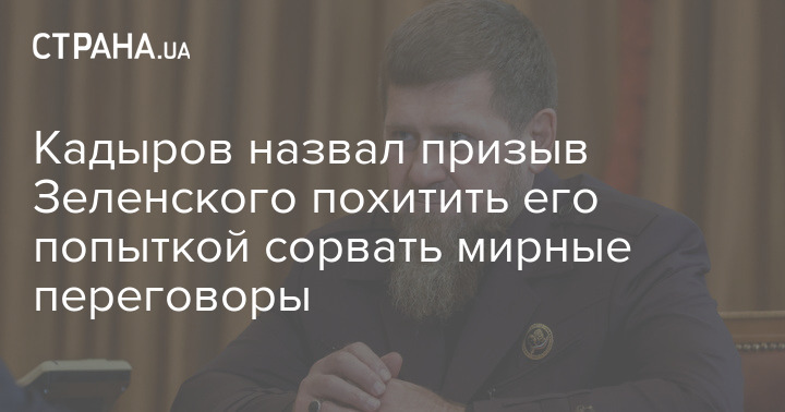 Кадиров назвав заклик Зеленського викрасти його спробою зірвати мирні переговори