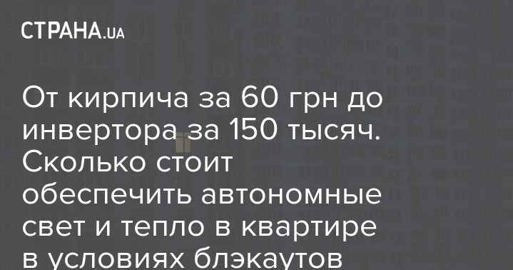 Від цеглини за 60 грн до інвертора за 150 тисяч. Скільки коштує забезпечити автономне світло та тепло в квартирі в умовах блекаутів?