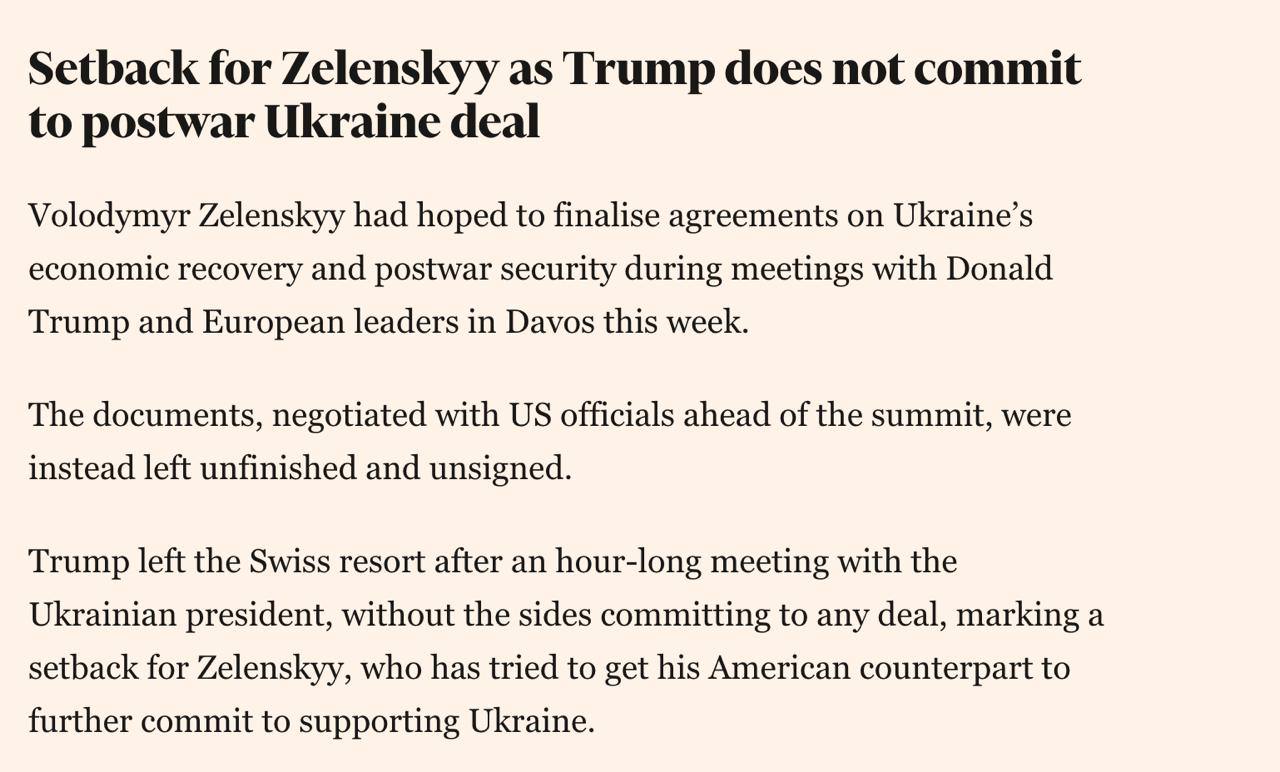 Раніше ми писали, що на полях Всесвітнього економічного форуму в Давосі відбулася зустріч Зеленського та Трампа.