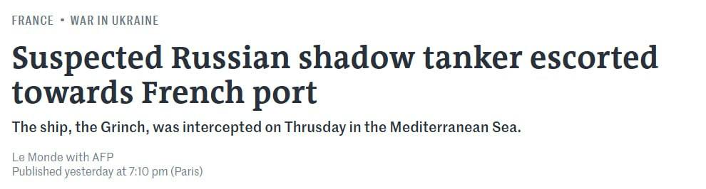 Нагадаємо, затримане судно випливало з Росії в Середземному морі. За словами президента Франції Емманюеля Макрона, його було затримано за участю "кілька союзників".