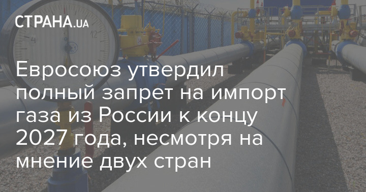 Міністри 27 країн-членів Європейського Союзу затвердили закон, який юридично зобов'язує блок повністю розірвати енергетичні зв'язки з Росією до кінця 2027 року та припинити імпортувати російський газ. Словаччина та Угорщина проголосували проти, але рішення ухвалили всупереч їхній позиції.
