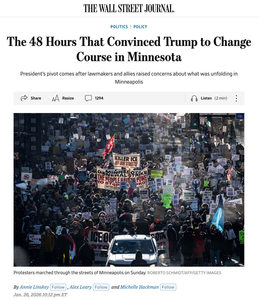 Але невдовзі ця версія почала розсипатися, оскільки з'явилися відео, які спростовують заяви влади. Після цього Трамп змінив курс та відмовився від різких оцінок подій. Президент США направив до Міннесоти "прикордонного царя" Тома Хомана, який виступає за "більш адресний підхід" при депортації мігрантів.