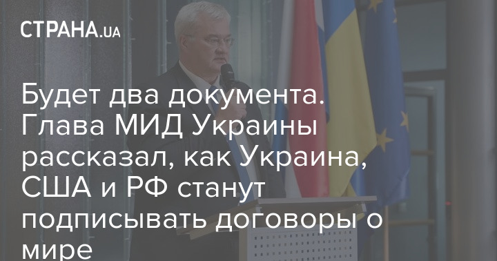 Міністр закордонних справ України Андрій Сибіга заявив, що конструкція мирного врегулювання передбачає два окремі документи: 20-пунктну угоду Україна підпише зі Сполученими Штатами (США), а окремий документ США підпишуть із Росією.