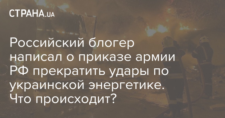 Російським військам надійшов наказ припинити удари по українській енергетичній інфраструктурі.