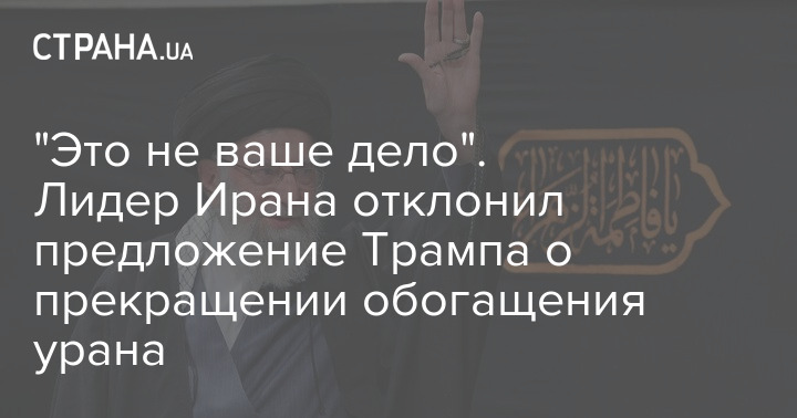 Верховний лідер Ірану Аятолла Алі Хаменеї фактично відхилив пропозицію президента США Дональда Трампа, яка передбачає поступове припинення збагачення урану.