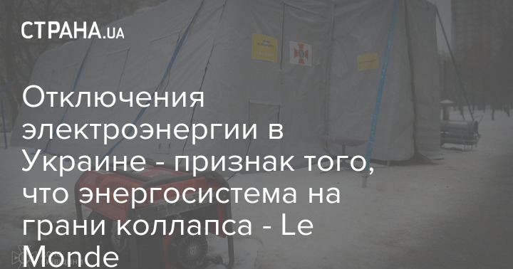 Сьогоднішні відключення електроенергії в Україні є однією з ознак того, що енергосистема країни перебуває на межі повного колапсу.
