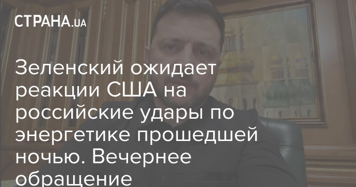Зеленський очікує на реакцію США на російські удари по енергетиці минулої ночі. Вечірнє звернення
