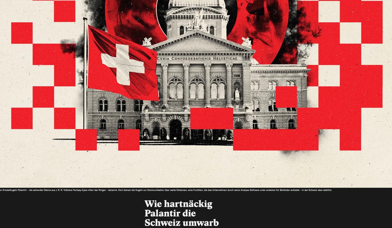 З'ясувалося, що американська компанія, широко представлена в багатьох країнах Європи, намагалася сім років укласти контракти з відомствами Швейцарії. Проте генштаб країни дійшов висновку, що під час використання програмного забезпечення Palantir немає гарантій від витоків до ЦРУ та АНБ. Військові визнали такі ризики неприйнятними і рекомендували не запроваджувати продукти компанії.