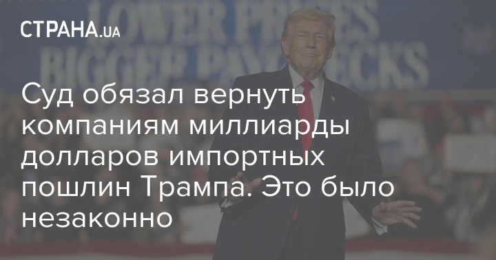 Суд з питань міжнародної торгівлі США зобов'язав митну службу повернути компаніям близько 130 млрд доларів, сплачених у вигляді імпортного мита, запровадженого адміністрацією президента ША Дональда Трампа.
