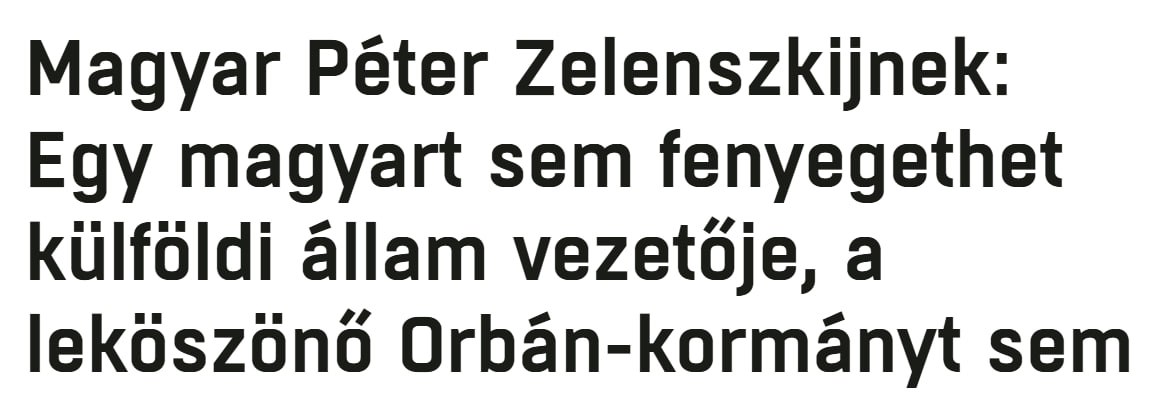"Жоден іноземний державний керівник не може загрожувати нікому, жодному угорцю. Ані уряду Орбана, що йде у відставку, ані майбутньому уряду "Тиси". Тому я закликаю українського президента пояснити свої слова, і якщо він дійсно це сказав, то відкликати їх", – заявив Мадяр.