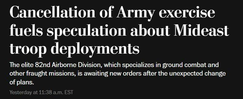 За їхніми даними, на це вказує раптове скасування запланованих навчань 82 повітряно-десантної дивізії швидкого реагування.